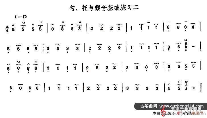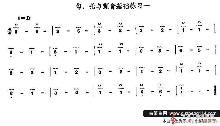 曲谱图网为您提供古筝勾托与颤音基础练习简谱(2首)找谱子,就上曲谱图网。