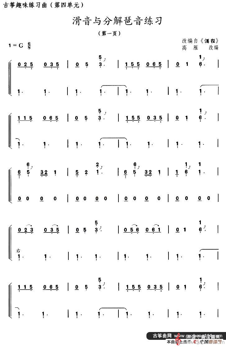 曲谱图网为您提供古筝滑音与分解琶音练习(选调《酒狂》)曲谱古筝谱找谱子,就上曲谱图网。
