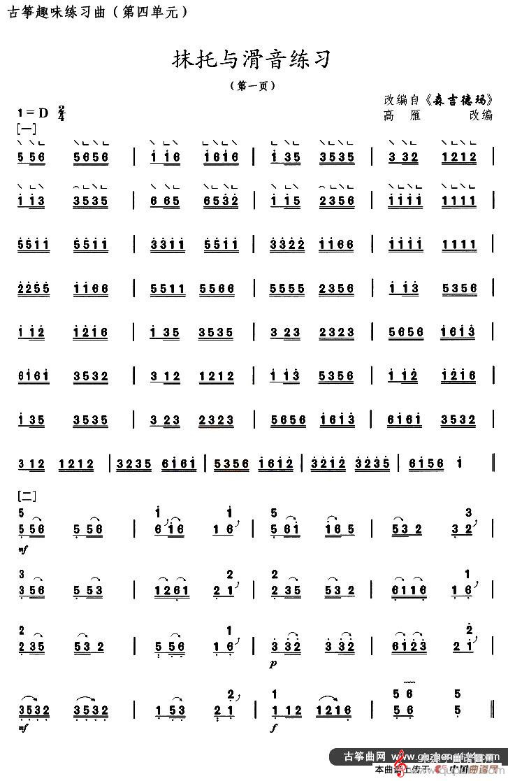 曲谱图网为您提供古筝抹托与滑音练习(选调《森吉德玛》)简谱曲谱古筝谱找谱子,就上曲谱图网。