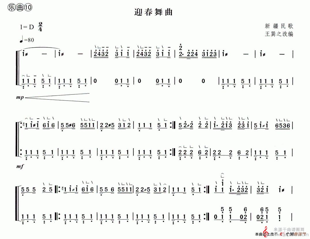 曲谱图网为您提供迎春舞曲(新疆民歌迎春舞曲简谱曲谱古筝谱)找谱子,就上曲谱图网。