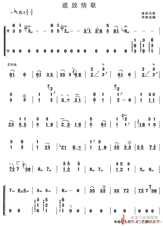 曲谱图网为您提供遮放情歌(黄梅改编版傣族民歌遮放情歌简谱曲谱)找谱子,就上曲谱图网。