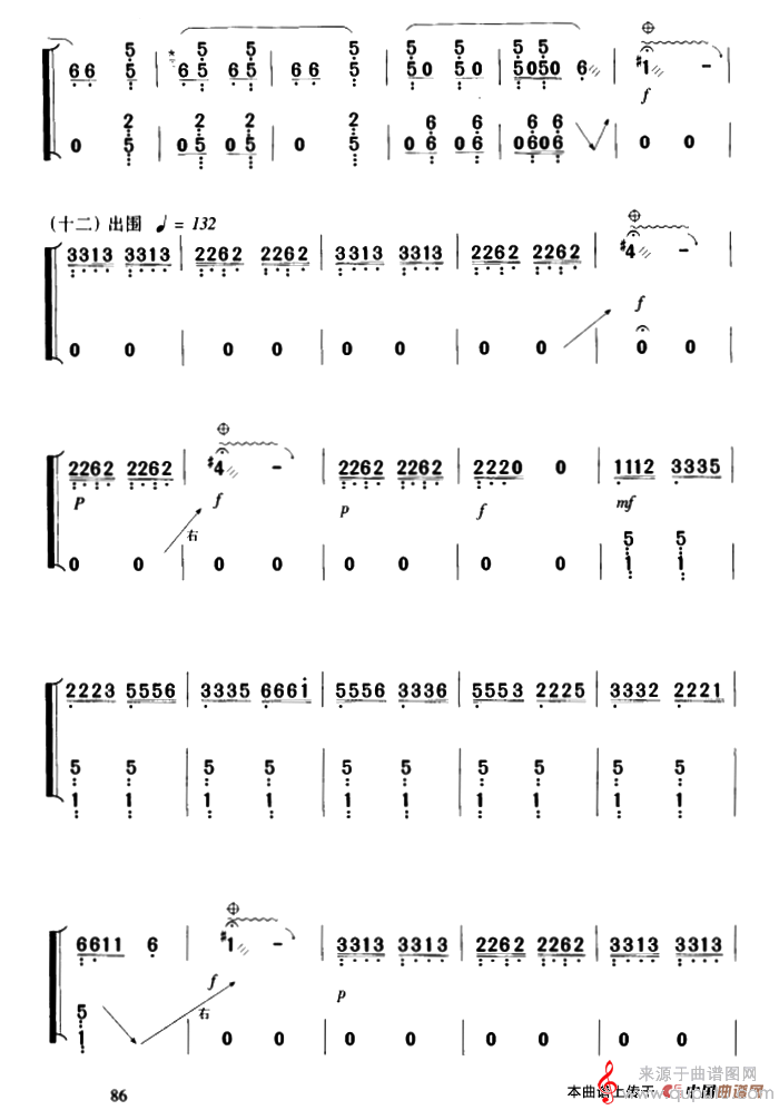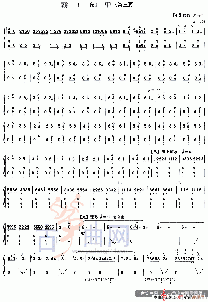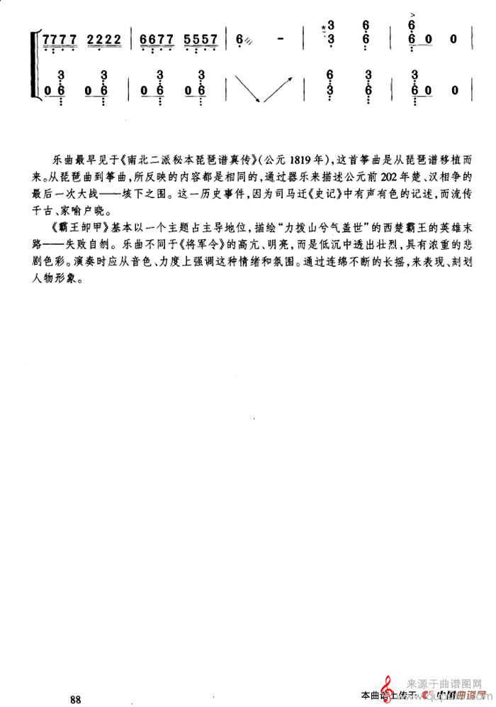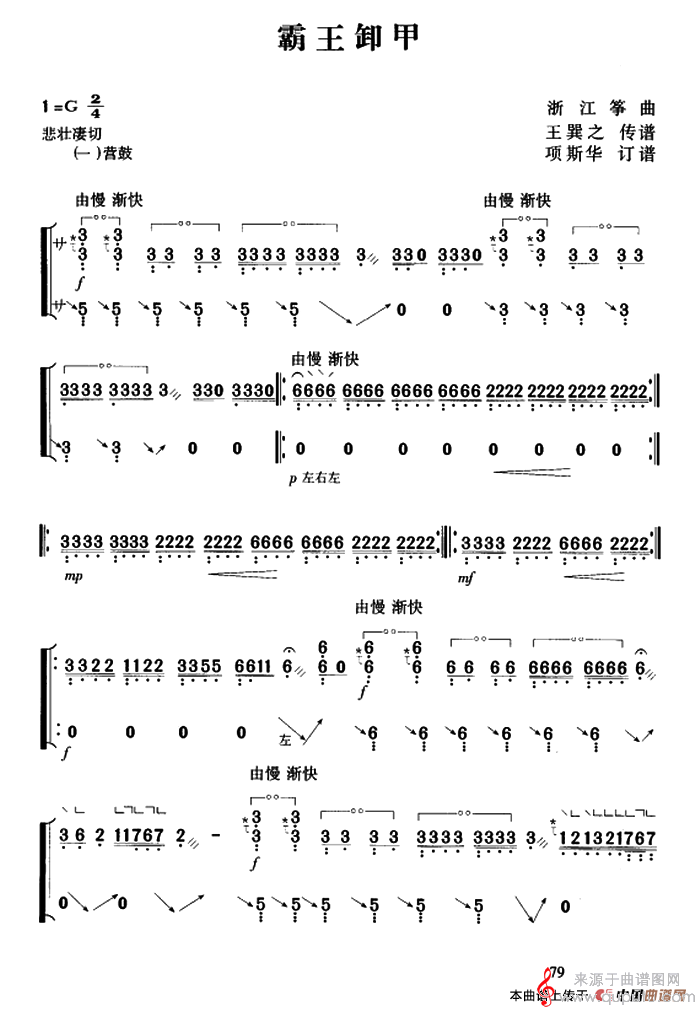 曲谱图网为您提供霸王卸甲(霸王卸甲浙江筝曲简谱曲谱)找谱子,就上曲谱图网。