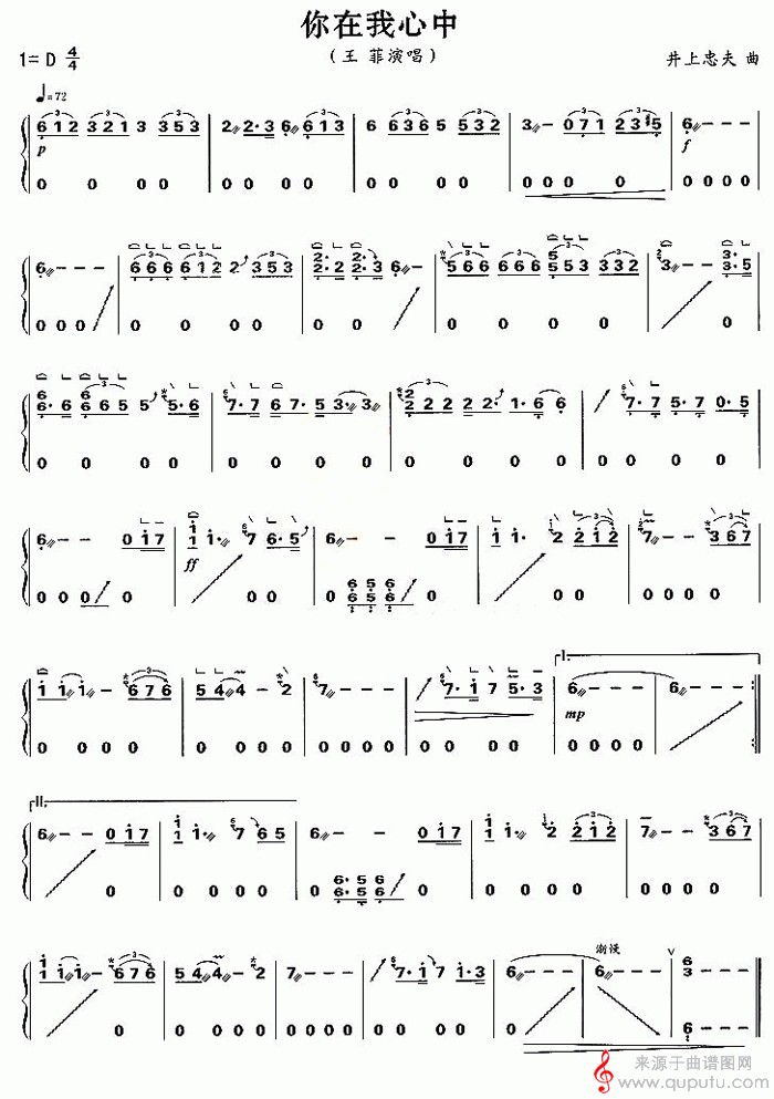 曲谱图网为您提供你在我心中(古筝曲谱)找谱子,就上曲谱图网。