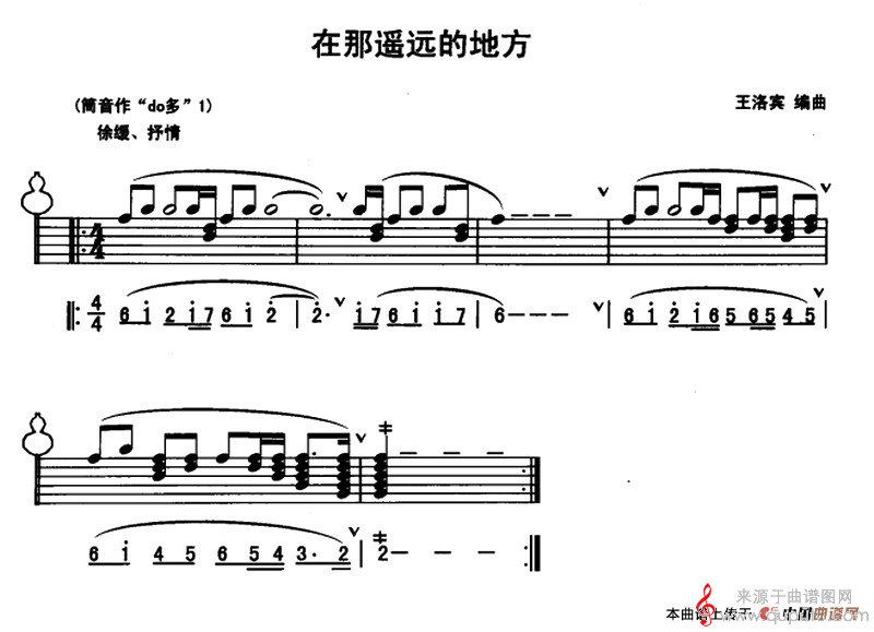 曲谱图网为您提供在那遥远的地方(线简谱混排版)找谱子,就上曲谱图网。