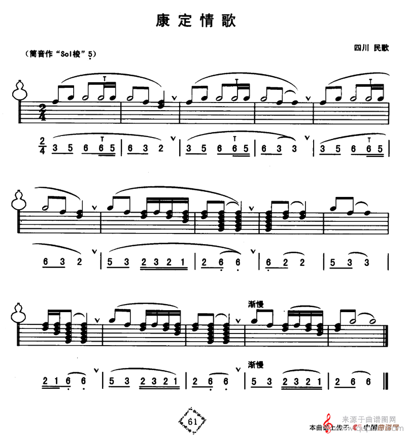 曲谱图网为您提供康定情歌(线简谱混排版)找谱子,就上曲谱图网。