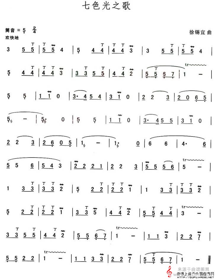 当前位置:曲谱图网器乐曲谱葫芦丝七色光之歌简谱(七色光之歌葫芦丝)