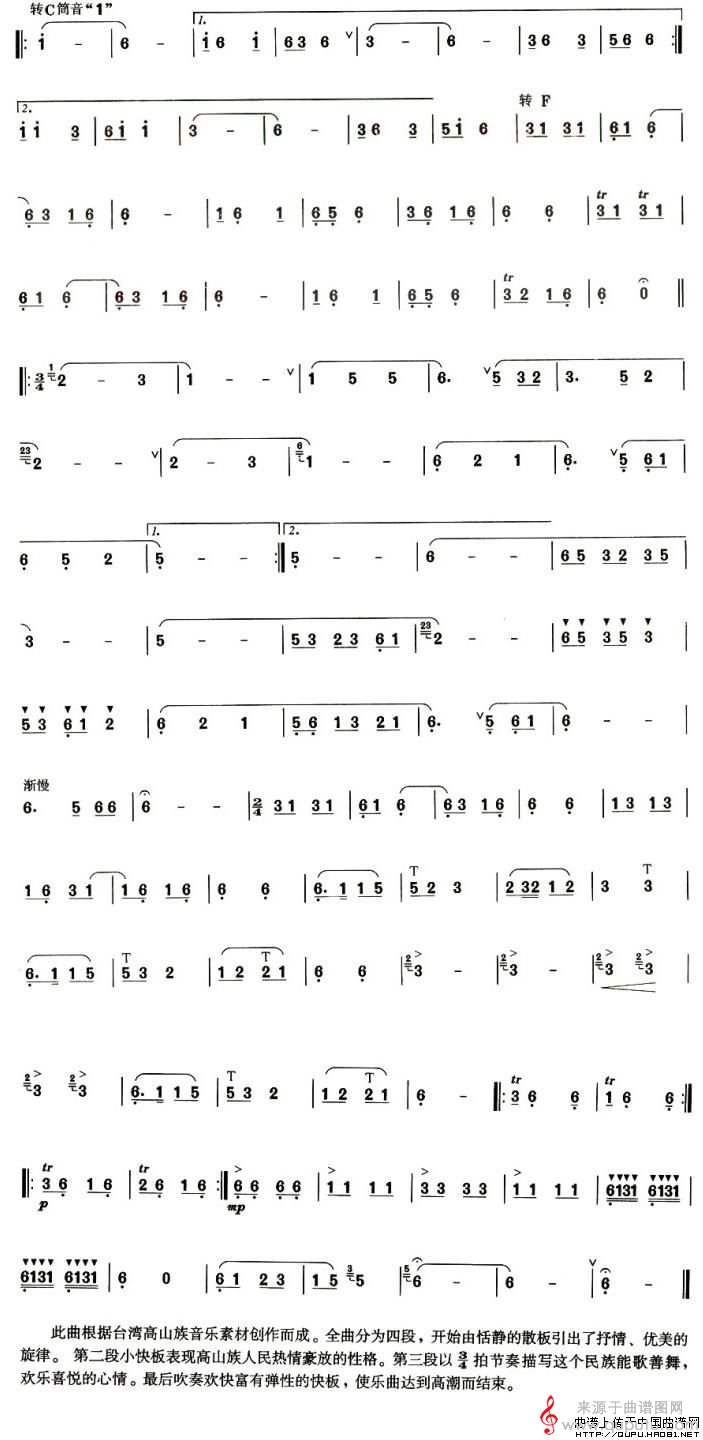 曲谱图网为您提供高山族舞曲简谱(高山族舞曲巴乌谱)找谱子,就上曲谱图网。