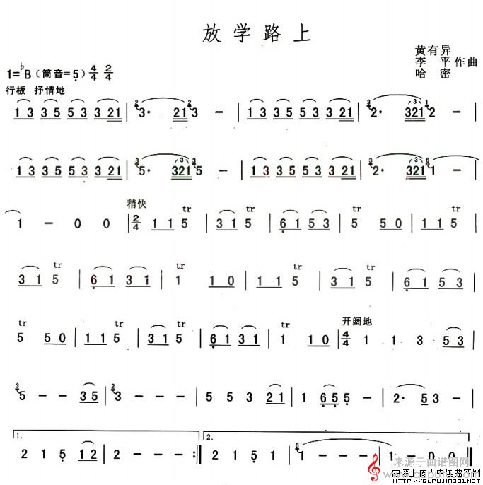 曲谱图网为您提供放学路上简谱(放学路上葫芦丝)找谱子,就上曲谱图网。