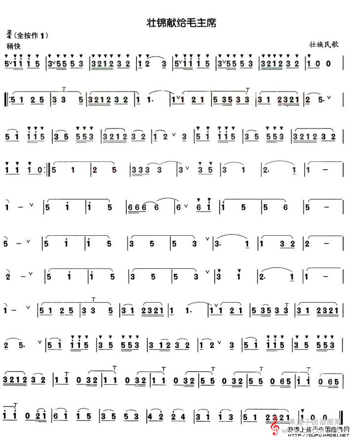曲谱图网为您提供壮锦献给毛主席简谱(壮锦献给毛主席葫芦丝)找谱子,就上曲谱图网。