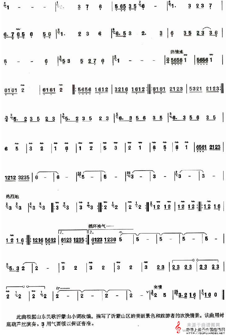 曲谱图网为您提供蒙山新貌简谱(蒙山新貌葫芦丝)找谱子,就上曲谱图网。
