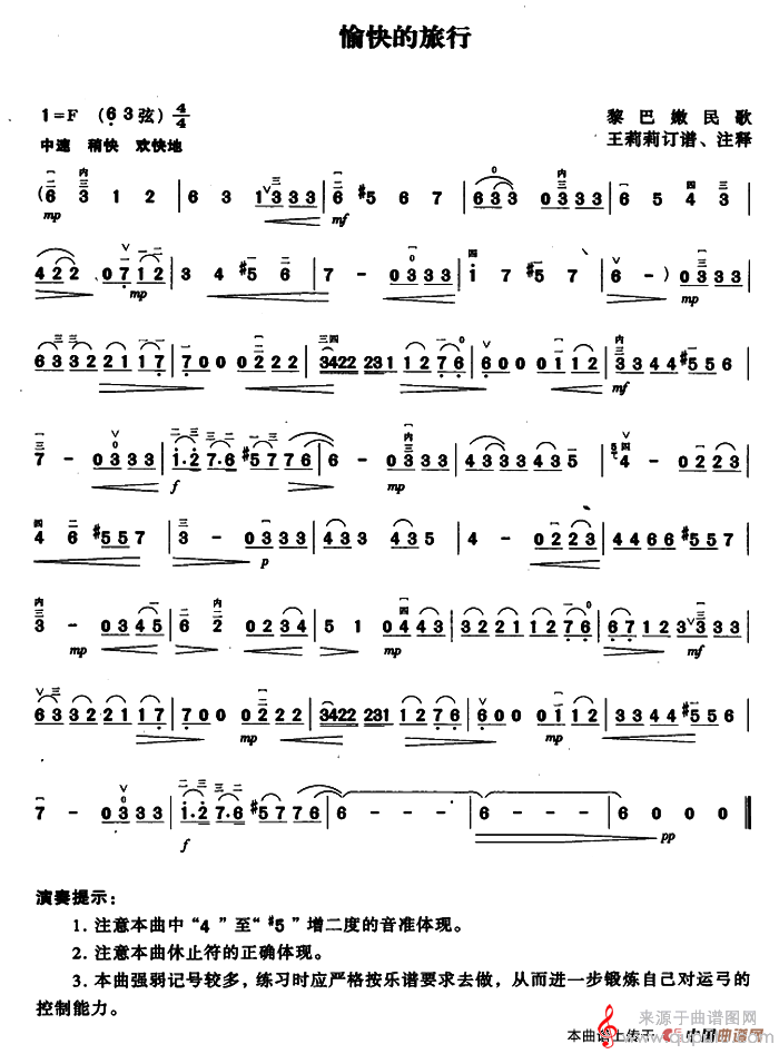 曲谱图网为您提供愉快的旅行(愉快的旅行胡琴)找谱子,就上曲谱图网。
