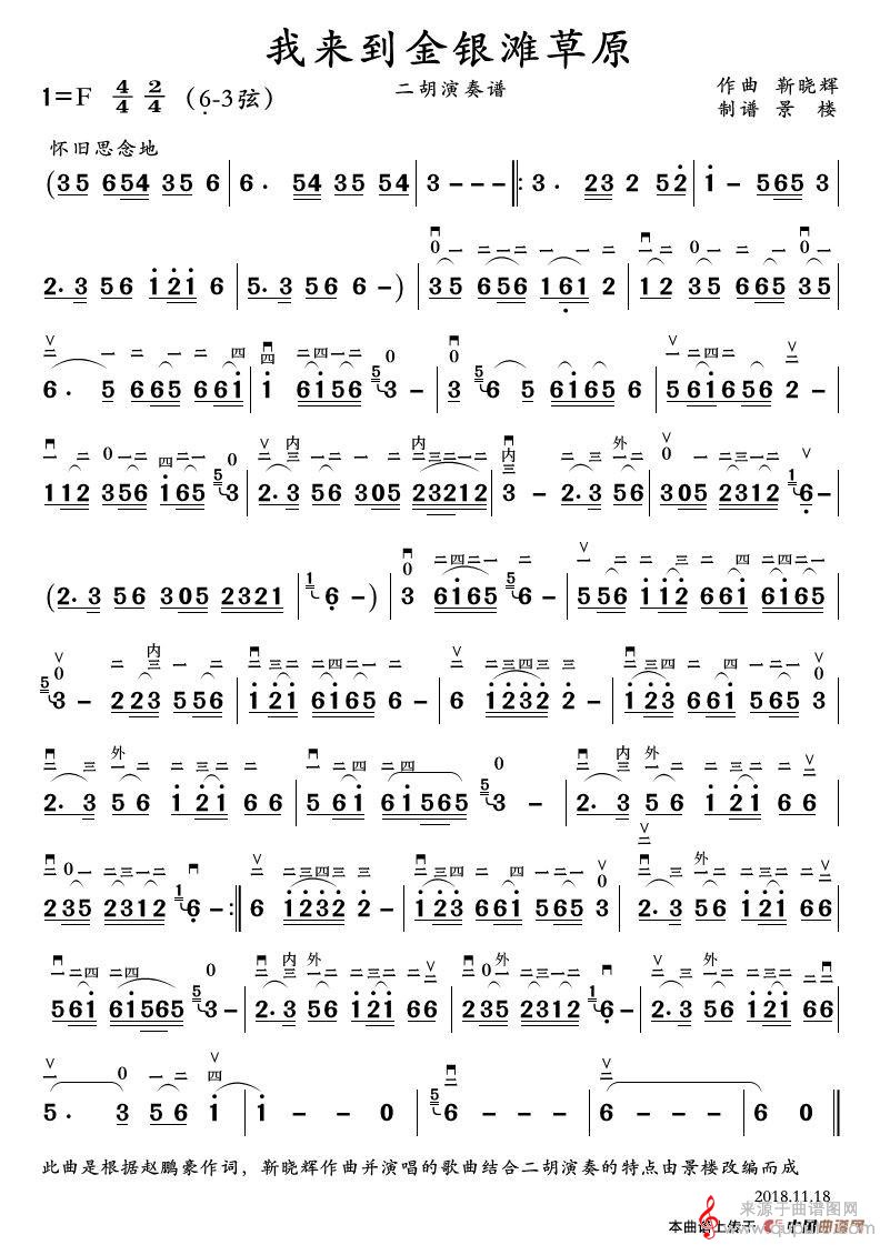 曲谱图网为您提供我来到金银滩草原(靳晓辉曲、景楼改编)找谱子,就上曲谱图网。