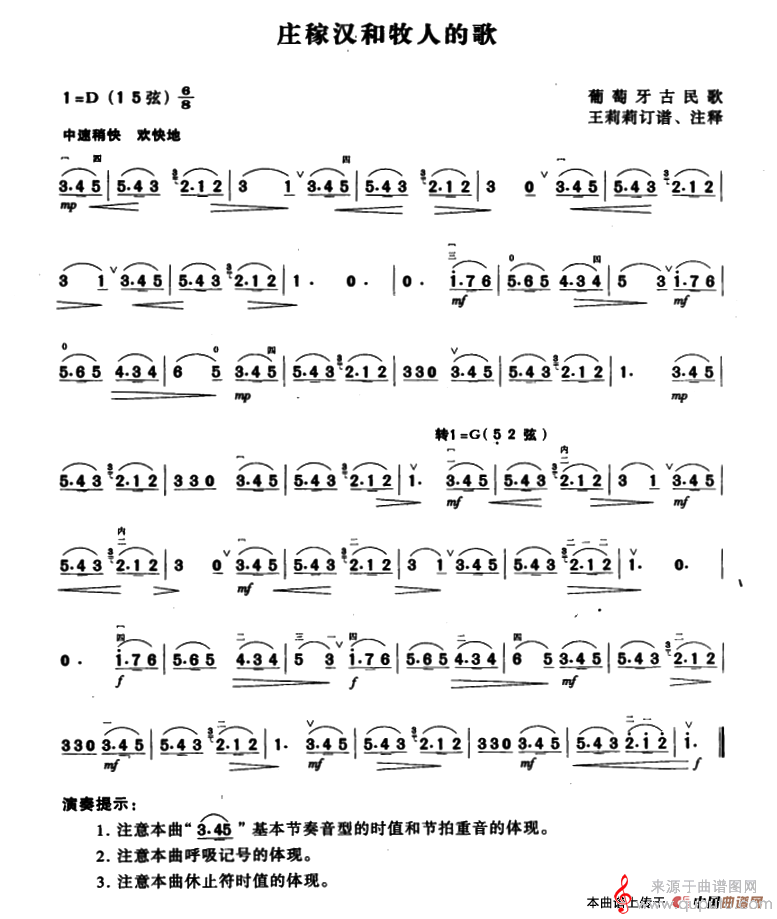 曲谱图网为您提供庄稼汉和牧人的歌(庄稼汉和牧人的歌歌曲胡琴)找谱子,就上曲谱图网。