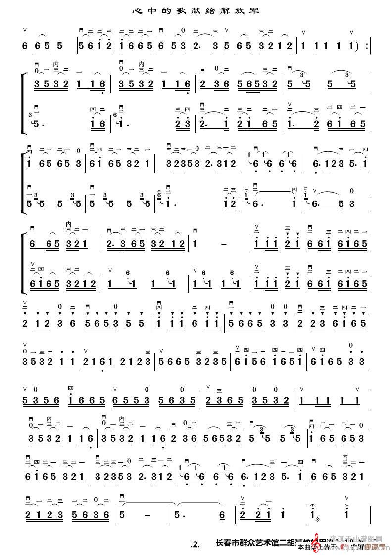 心中的歌献给解放军(心中的歌献给解放军二胡合奏谱)