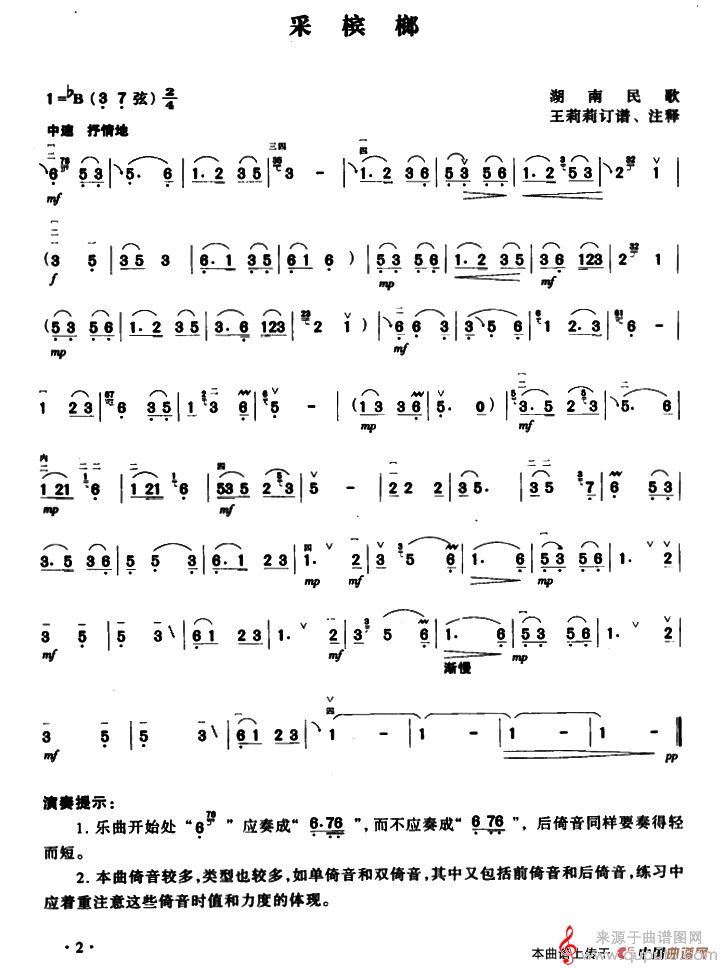 湖南民歌、王莉莉订谱
