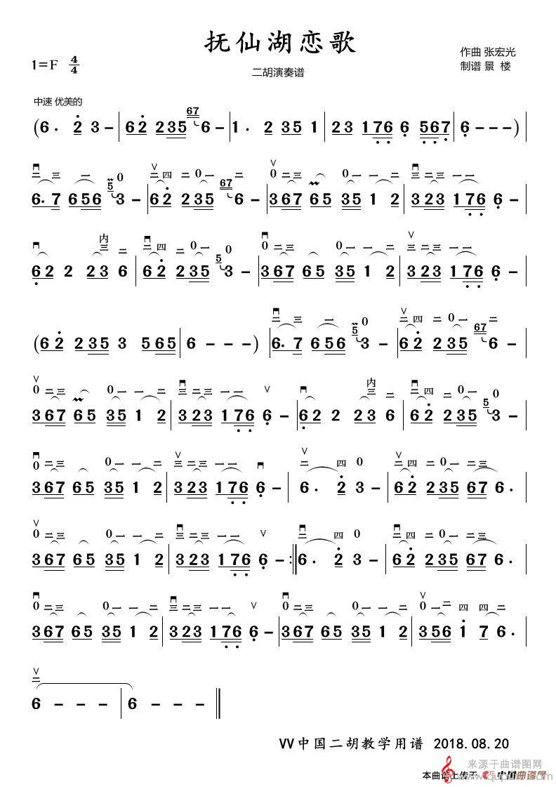 曲谱图网为您提供抚仙湖恋歌(抚仙湖恋歌简谱伴奏二胡谱)找谱子,就上曲谱图网。