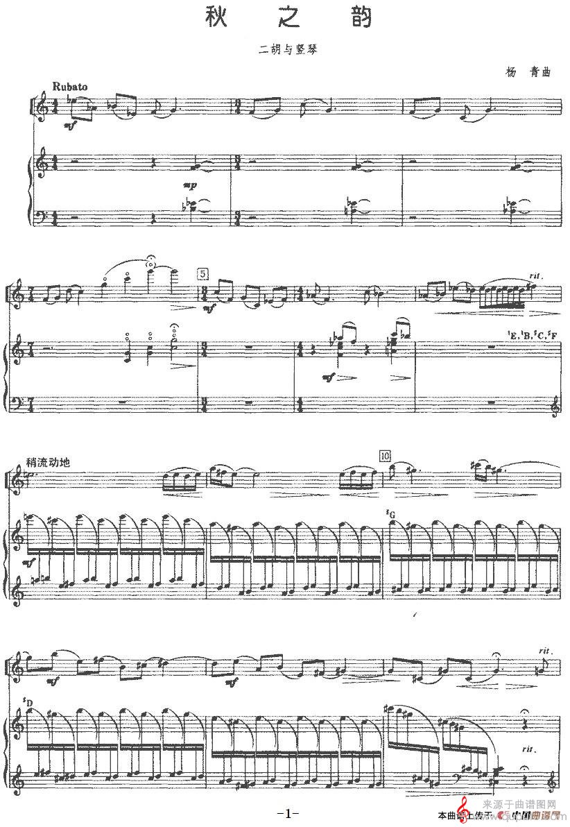 曲谱图网为您提供秋之韵(秋之韵二胡+竖琴)找谱子,就上曲谱图网。