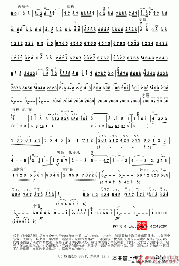 曲谱图网为您提供长城随想(长城随想二胡独奏简谱)找谱子,就上曲谱图网。
