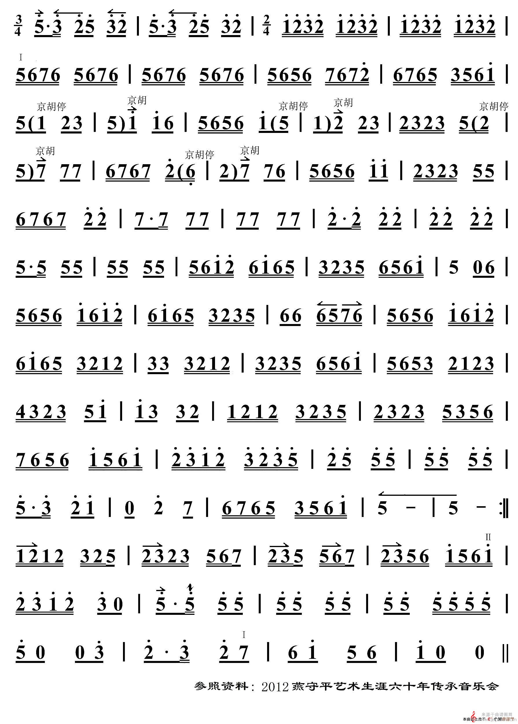 恒流星胡琴伴奏谱
