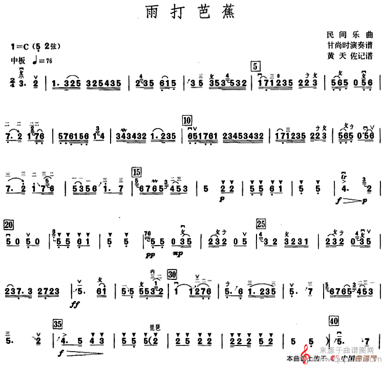 雨打芭蕉(雨打芭蕉歌词甘尚时高胡演奏谱)