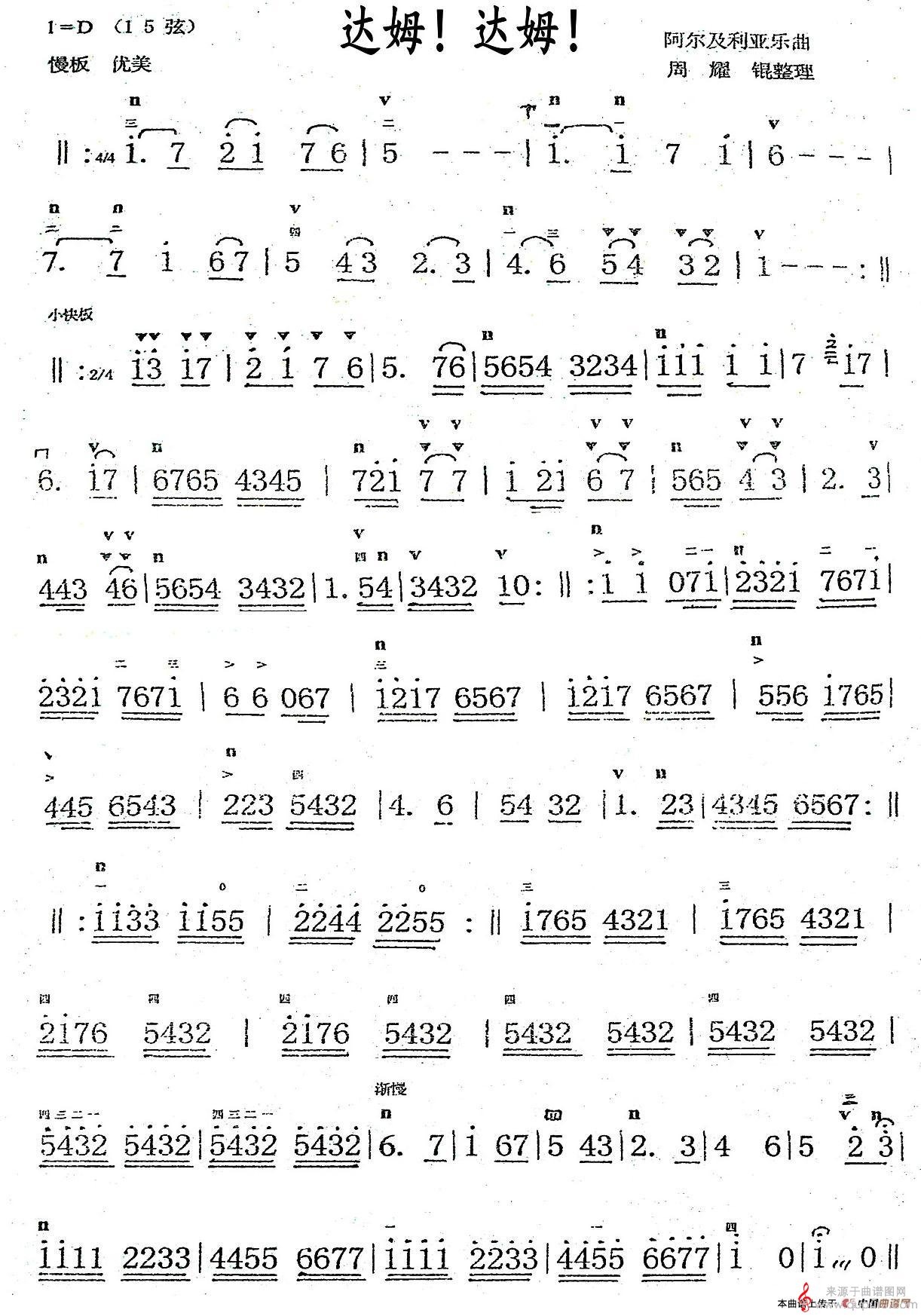 达姆!达姆!(达姆!达姆!简谱二胡)
