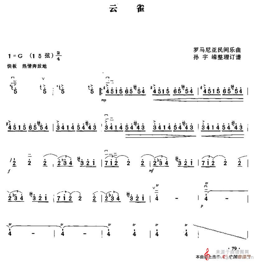 曲谱图网为您提供云雀民乐曲谱(云雀二胡演奏简谱)找谱子,就上曲谱图网。