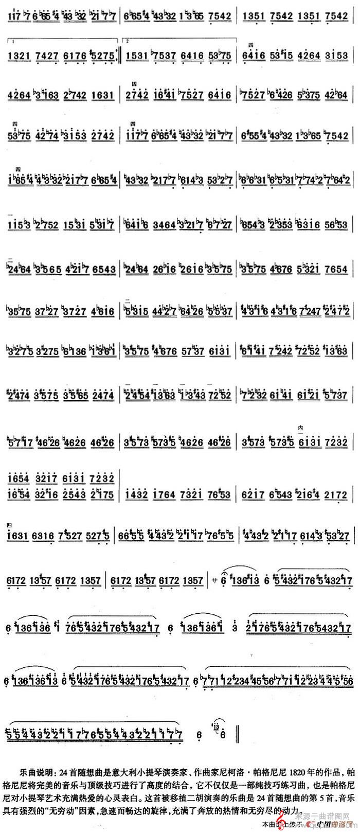二胡独奏曲选:帕格尼尼随想曲 NO.5 简谱(帕格尼尼随想曲 NO.5二胡独奏简谱)