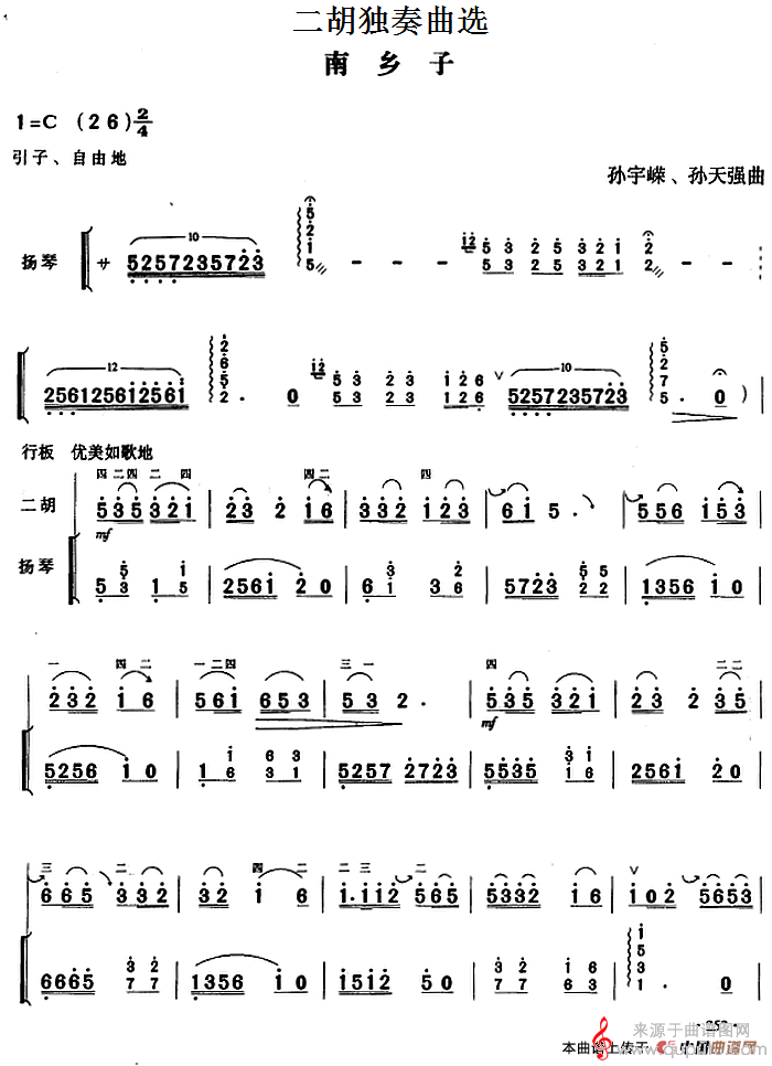 二胡独奏曲选:南乡子简谱(南乡子 二胡独奏简谱)
