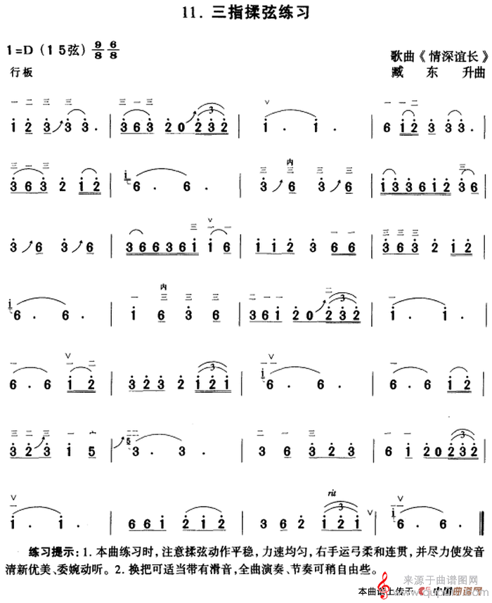 曲谱图网为您提供二胡指法练习:三指揉弦练习简谱(二胡指法练习:三指揉弦练习示范曲)找谱子,就上曲谱图网。