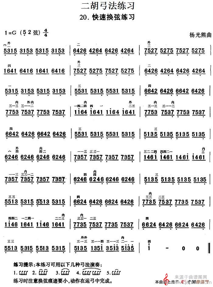 曲谱图网为您提供二胡弓法练习:快速换弦练习简谱(二胡弓法练习:快速换弦练习示范曲)找谱子,就上曲谱图网。