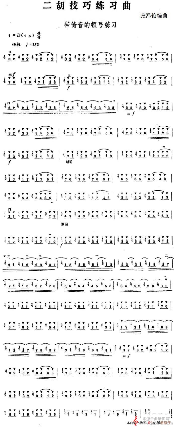曲谱图网为您提供二胡技巧练习曲:带倚音的顿弓练习简谱(二胡技巧练习曲:带倚音的顿弓练习示范曲)找谱子,就上曲谱图网。