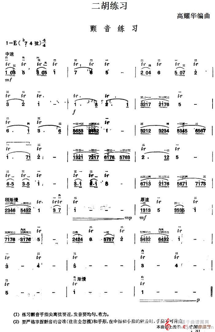曲谱图网为您提供二胡练习:颤音练习简谱(二胡练习:颤音练习示范曲)找谱子,就上曲谱图网。