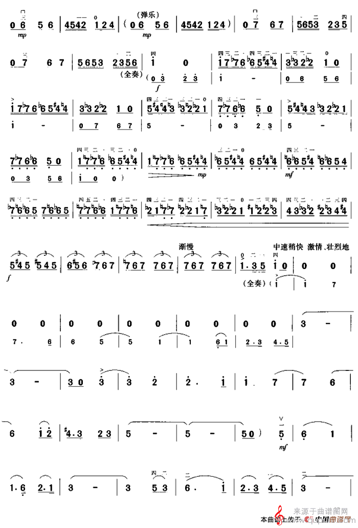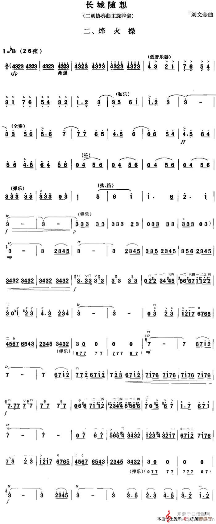 曲谱图网为您提供长城随想二、烽火操简谱(长城随想二、烽火操二胡协奏曲主旋律谱)找谱子,就上曲谱图网。
