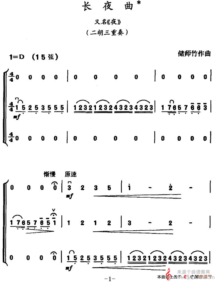 曲谱图网为您提供长夜曲(又名:夜)简谱(长夜曲(又名:夜)二胡三重奏简谱)找谱子,就上曲谱图网。