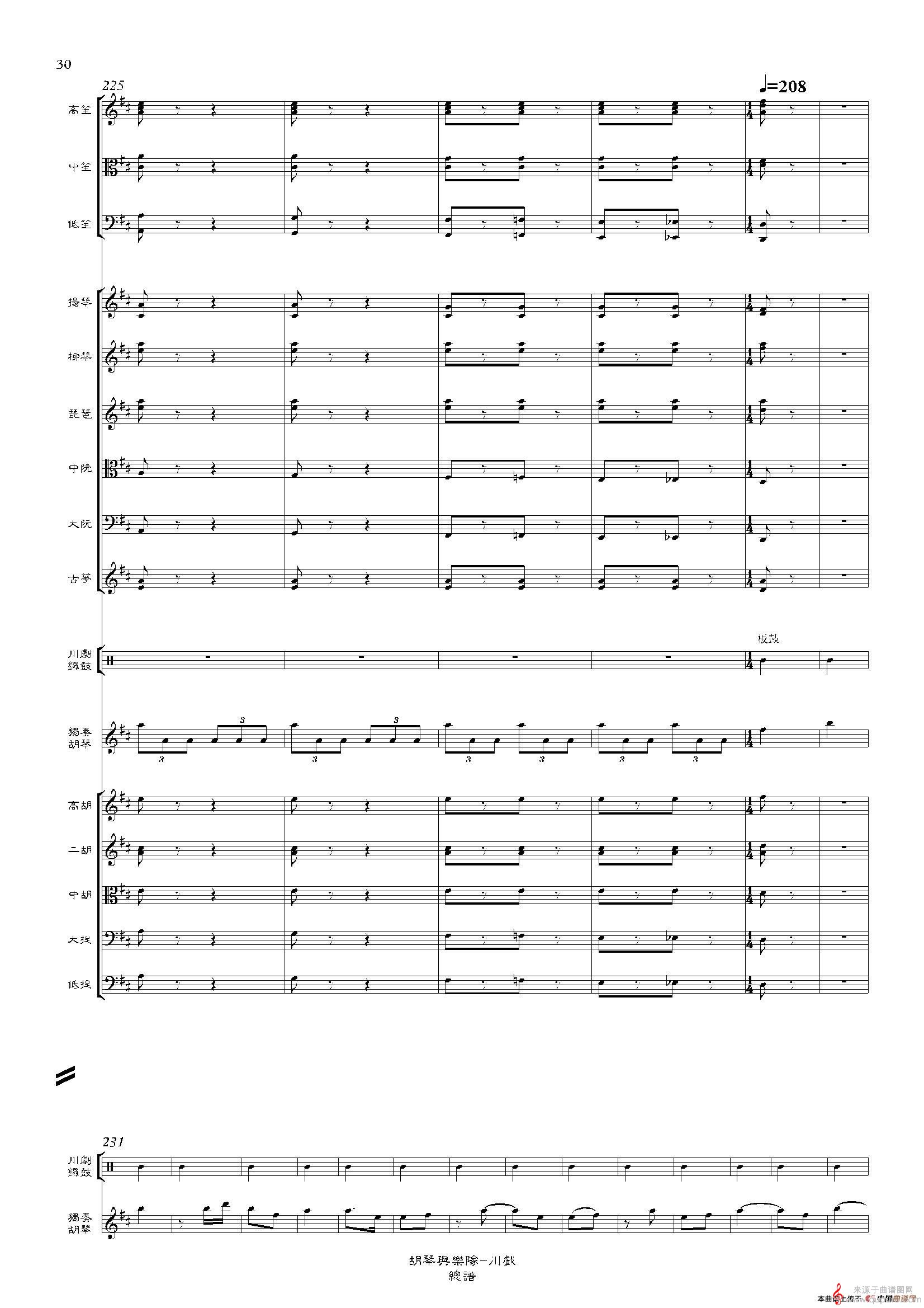 曲谱图网为您提供川戏简谱(川戏胡琴独奏+乐队伴奏总谱)找谱子,就上曲谱图网。