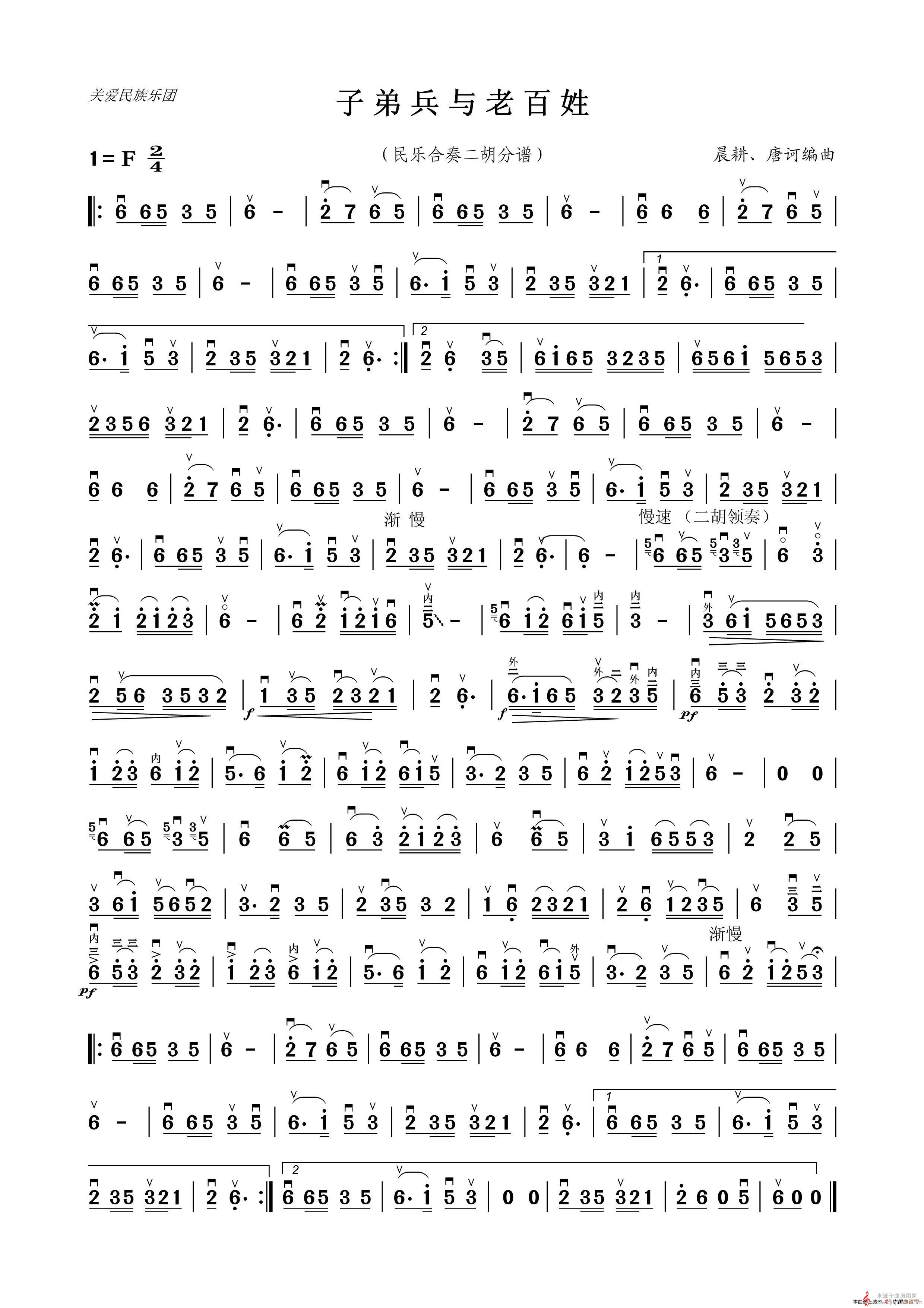 子弟兵与老百姓(民乐合奏二胡分谱)