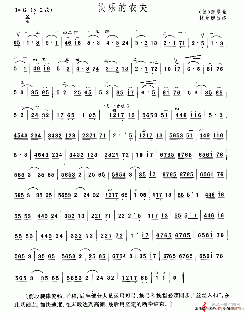 快乐的农夫简谱(快乐的农夫二胡独奏曲曲谱)