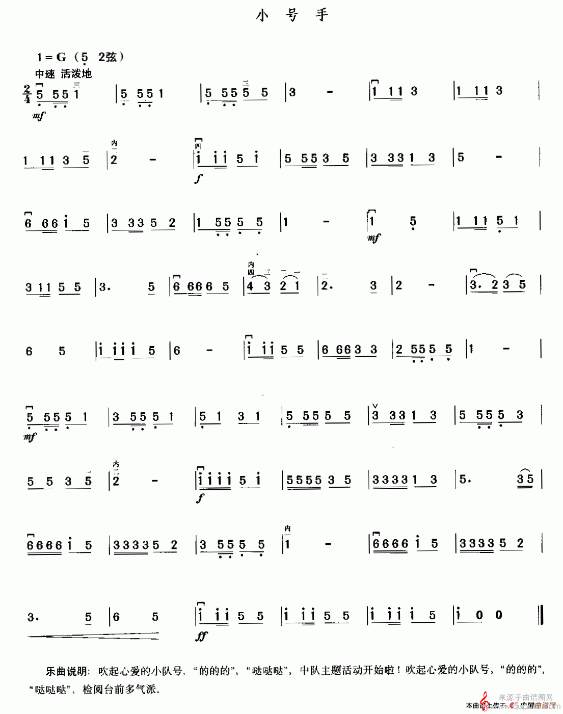 曲谱图网为您提供小号手简谱(小号手二胡独奏简谱)找谱子,就上曲谱图网。