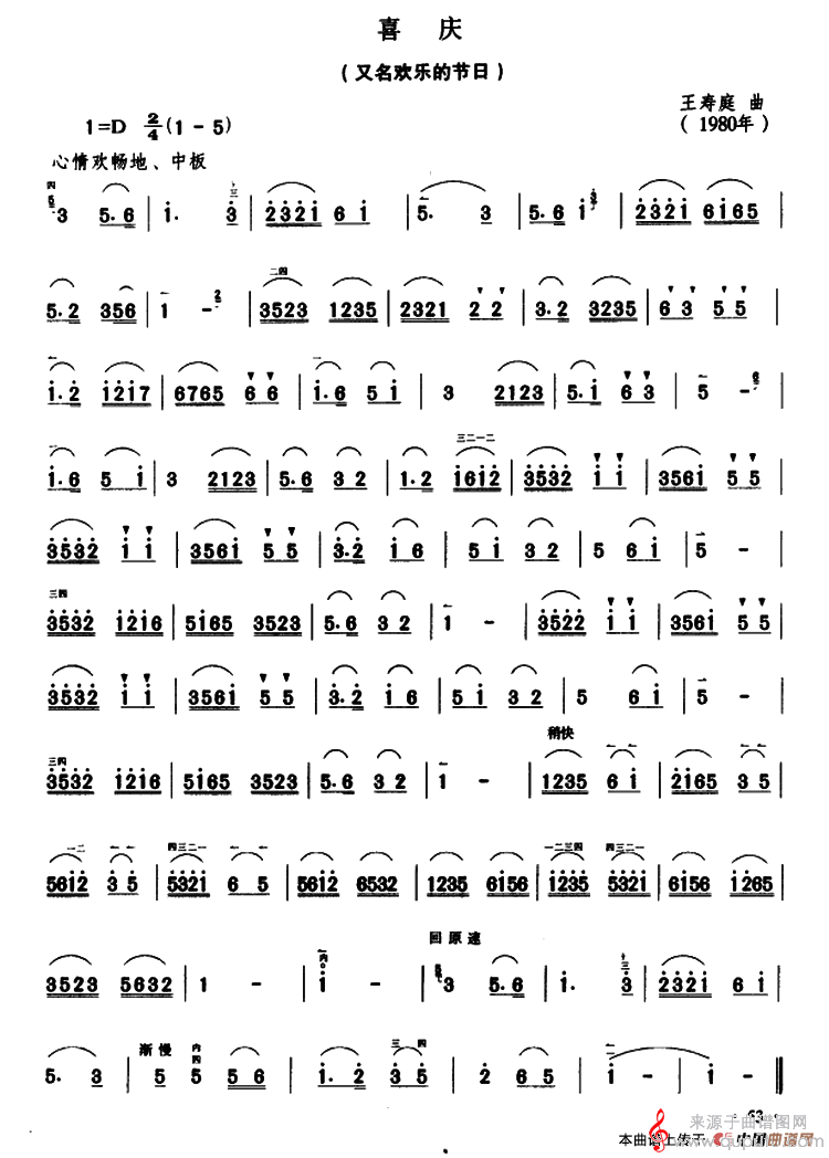 曲谱图网为您提供喜庆简谱(喜庆二胡独奏曲曲谱)找谱子,就上曲谱图网。