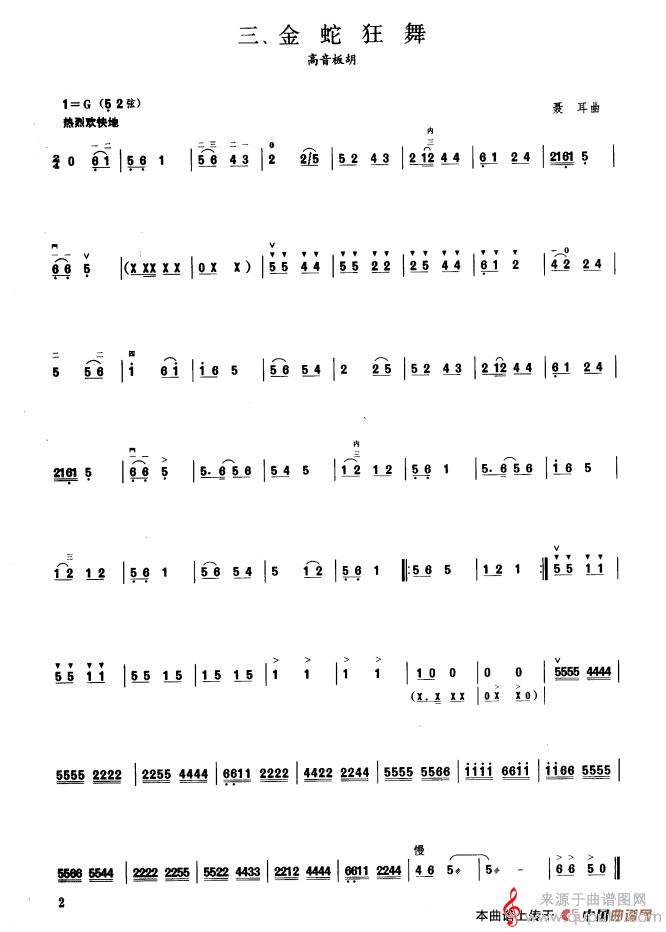 金蛇狂舞简谱(金蛇狂舞 板胡曲集第一级 高音板胡演奏曲谱)