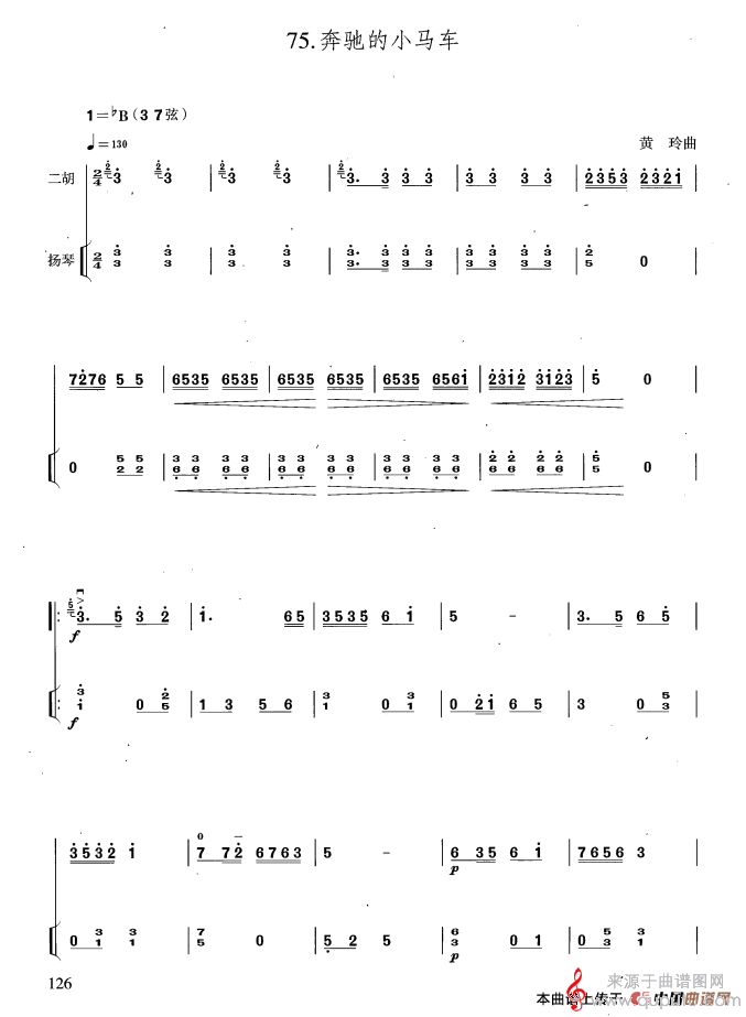 曲谱图网为您提供奔驰的小马车简谱(奔驰的小马车扬琴伴奏曲谱)找谱子,就上曲谱图网。