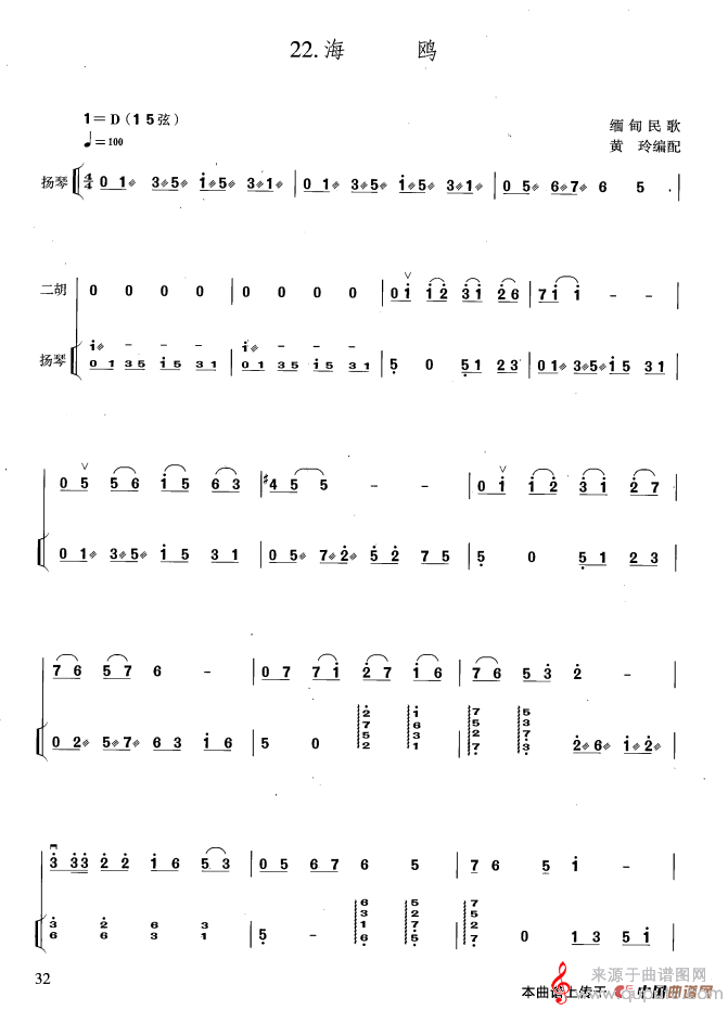 曲谱图网为您提供海鸥民歌歌曲简谱(海鸥扬琴演奏简谱)找谱子,就上曲谱图网。