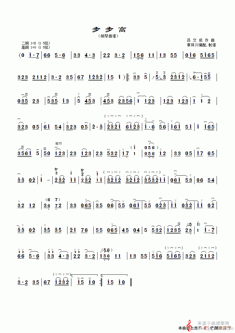 曲谱图网为您提供步步高简谱(步步高胡琴演奏曲谱 章祥兴制谱版)找谱子,就上曲谱图网。