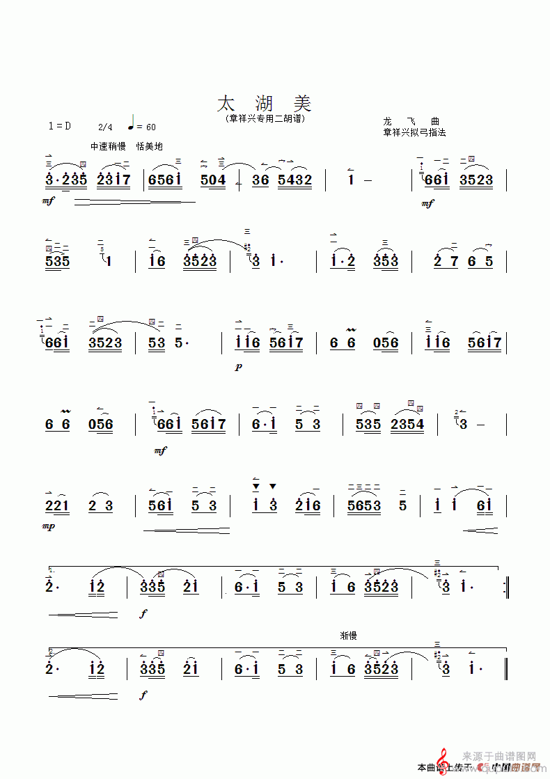 曲谱图网为您提供太湖美简谱(太湖美二胡独奏简谱 章祥兴制谱版)找谱子,就上曲谱图网。