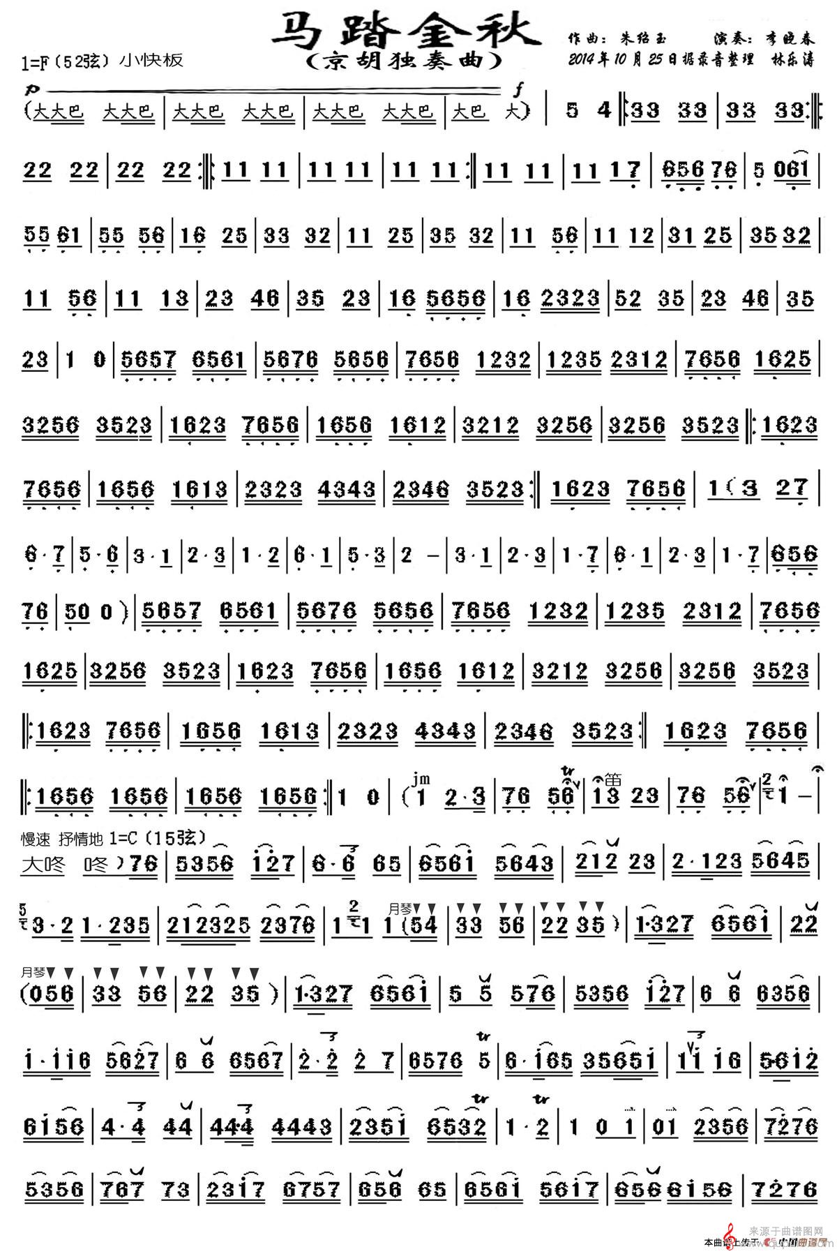 马踏金秋简谱(马踏金秋京胡独奏曲曲谱)