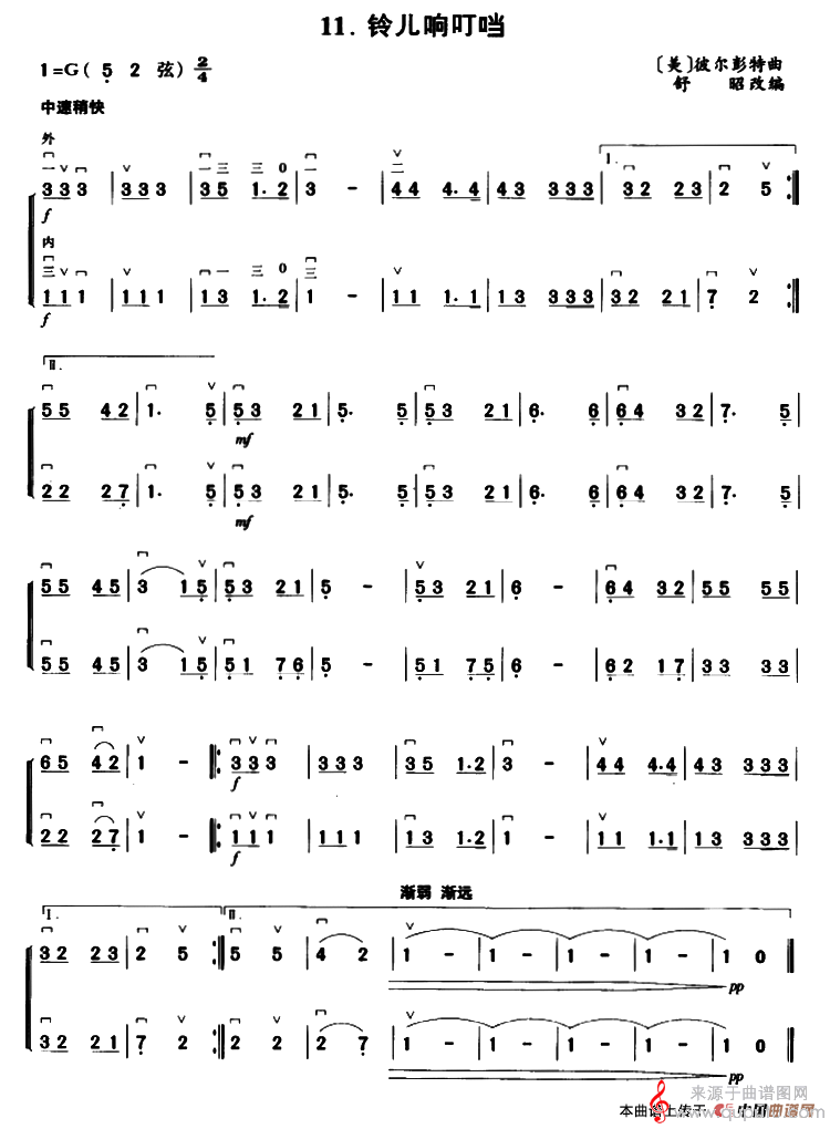 曲谱图网为您提供铃儿响叮当简谱(铃儿响叮当二胡演奏曲谱)找谱子,就上曲谱图网。