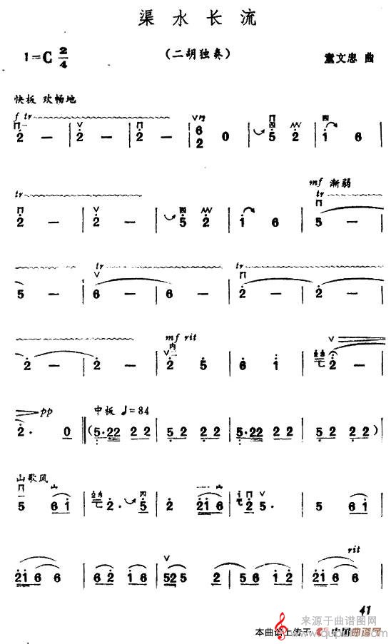 曲谱图网为您提供渠水长流简谱(渠水长流二胡演奏完整版)找谱子,就上曲谱图网。