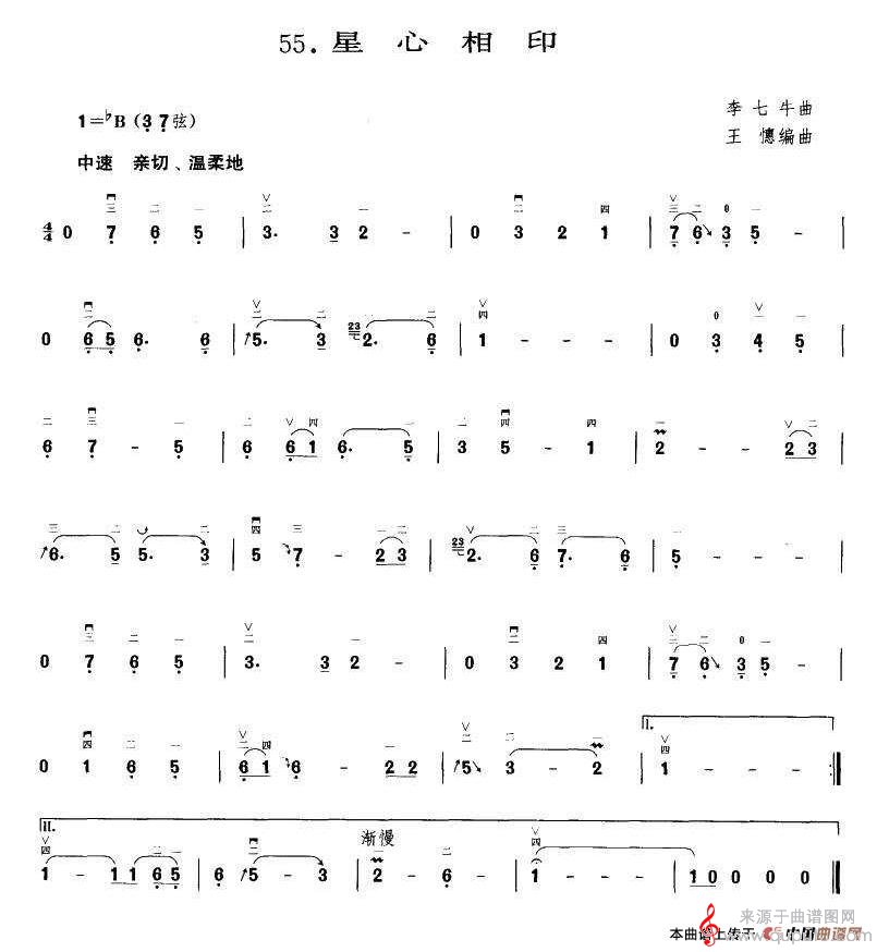 曲谱图网为您提供星心相印(星心相印二胡演奏简谱)找谱子,就上曲谱图网。