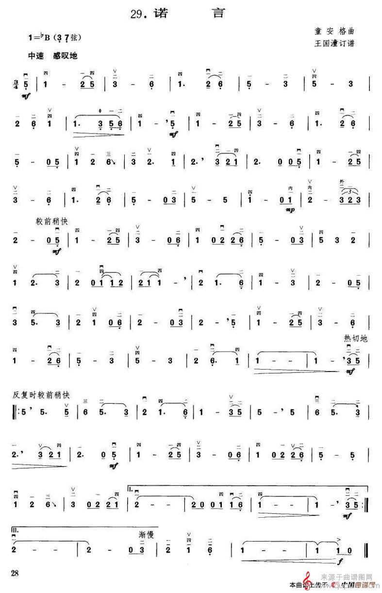 曲谱图网为您提供诺言(诺言古筝电子琴二胡乐器演奏简谱)找谱子,就上曲谱图网。