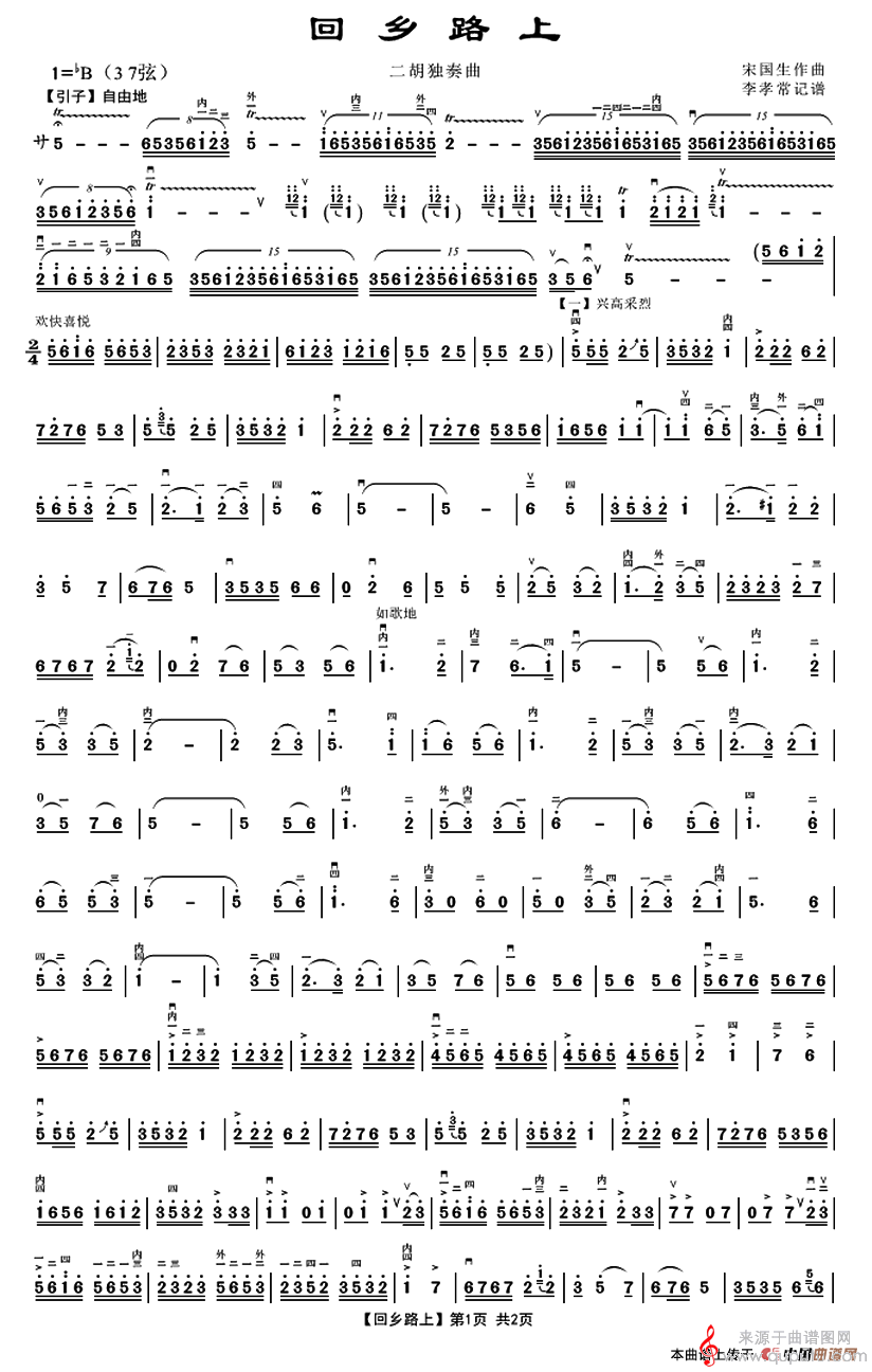 曲谱图网为您提供回乡路上(回乡路上二胡独奏简谱)找谱子,就上曲谱图网。